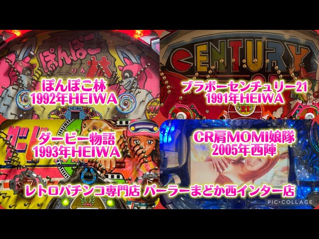 ぽんぽこ林1992年HEIWA、CR肩MOMI娘隊2005年西陣、ブラボーセンチュリー21 1991年HEIWA、ダービー物語1993年HEIWA【レトロパチンコ専門店 パーラーまどか西インター店】