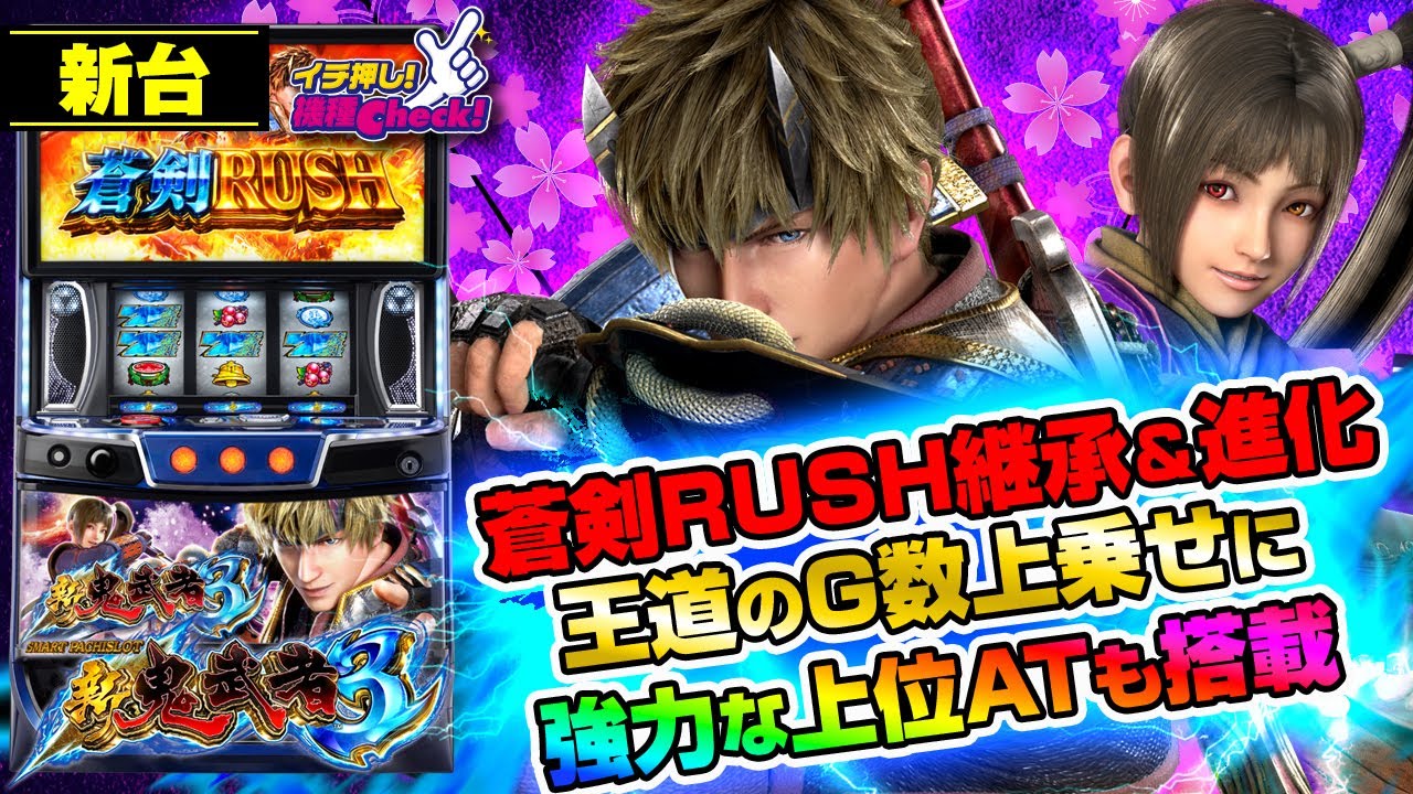 新台 【スマスロ 新鬼武者3】名機・新鬼武者から継承&進化! ATは王道のG数上乗せ+継続抽選! 新搭載の上位ATは期待枚数 約3600枚!「イチ押し機種CHECK!」[パチスロ][スロット]