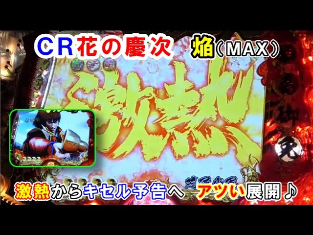 CR花の慶次 焔(MAX) 激熱からキセル予告へ アツい展開♪【懐かしいパチンコ レトロパチンコのスーパーリーチと大当たり】